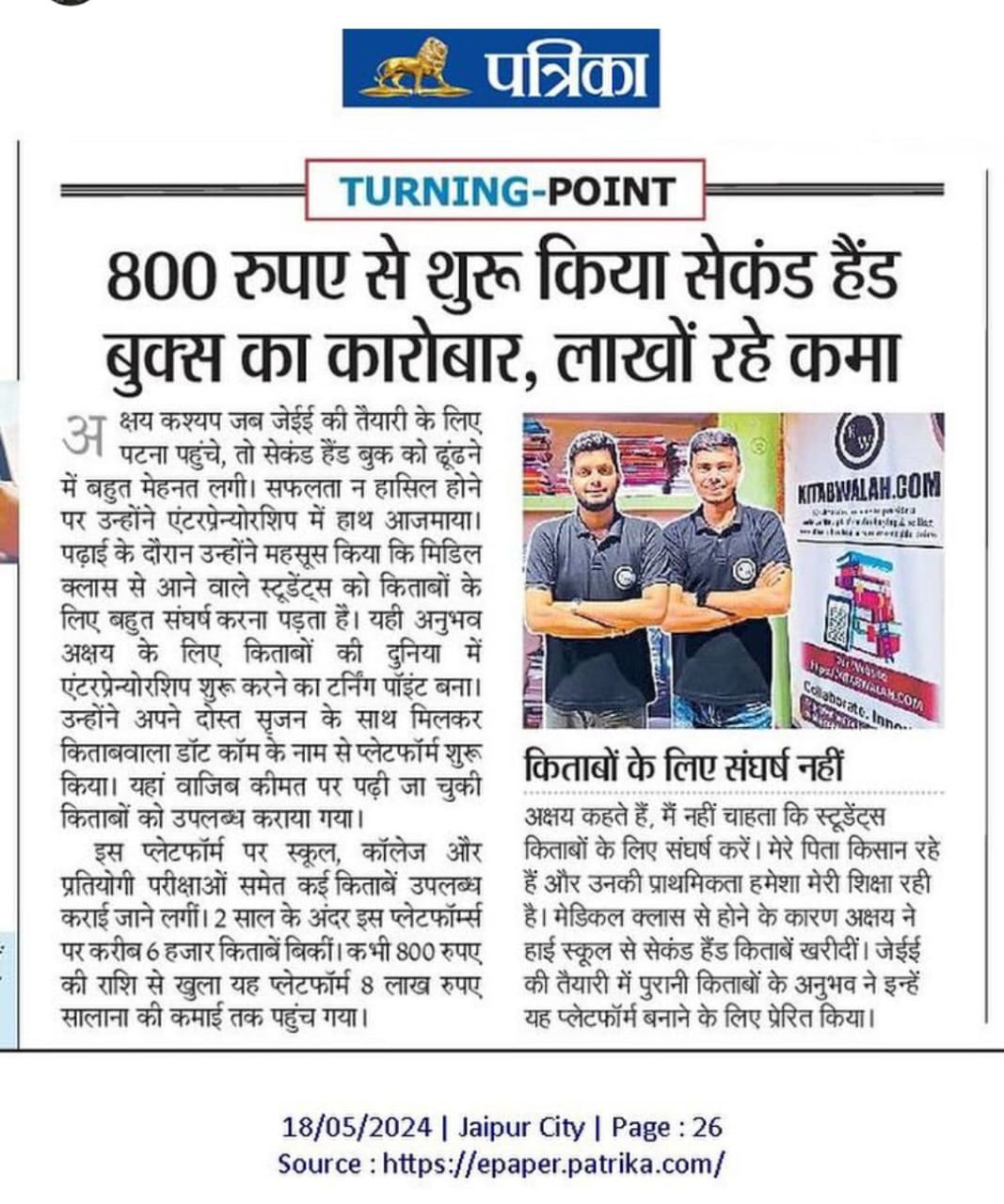 I am extremely impressed with the service of Kitabwalah. I placed my order and, to my surprise, the books were delivered the very next day even though the location was 200 kilometres away from Patna. The packaging was perfect, and the books arrived in excellent condition. It's rare to find such fast and reliable delivery. Highly recommended for all book lovers!