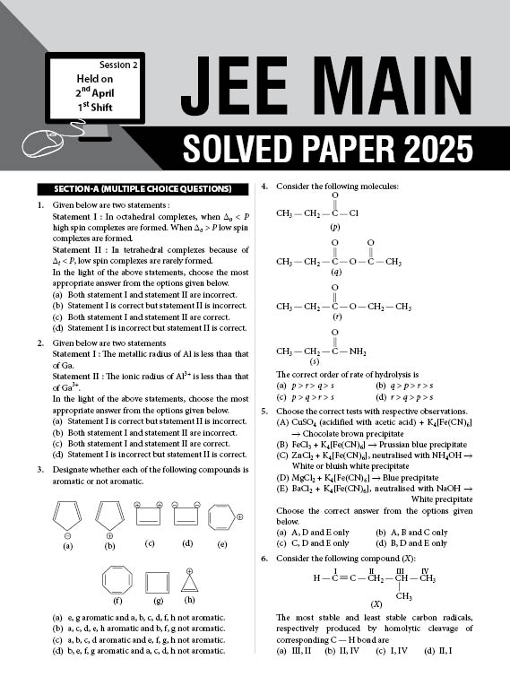- 5 Mock test papers for the self-evaluation of your JEE preparation.