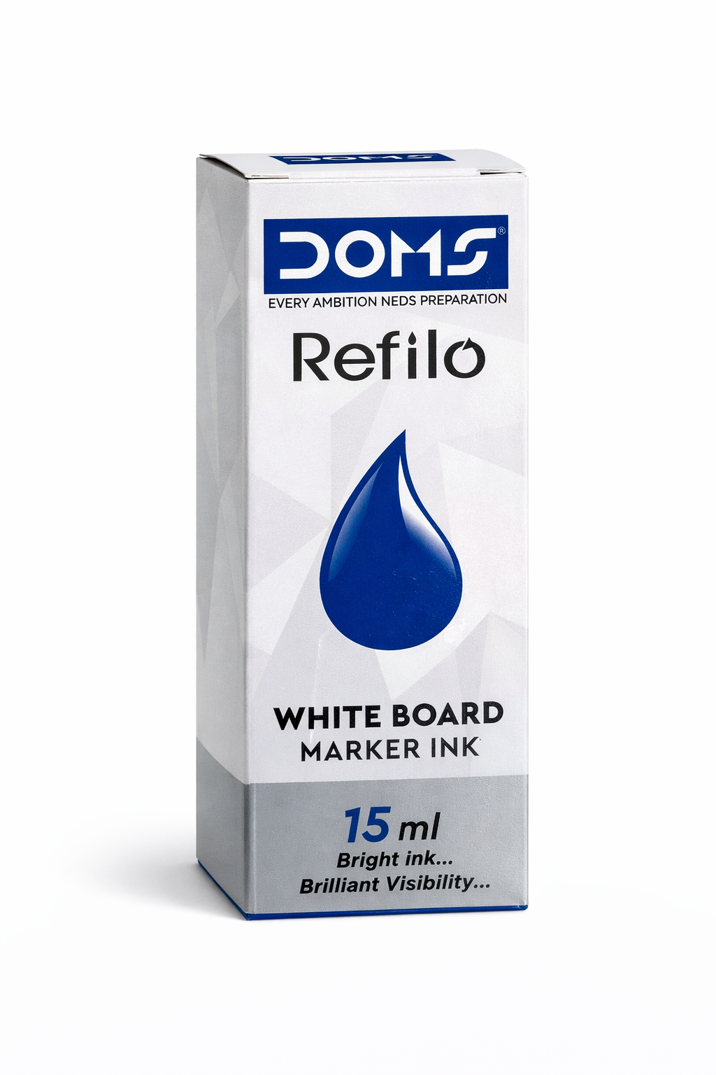 DOMS Refilo White Board Marker Ink is a high-quality, professional-grade solution designed to keep your presentations and lessons clear and impactful. This 15ml bottle features bright blue ink that provides brilliant visibility and bold, easily readable strokes on any whiteboard surface. The advanced formula is quick-drying, which prevents messy smudging or smearing, and is easily erasable without leaving residue behind. Choosing a refillable option is an eco-friendly and cost-effective choice, as it reduces waste and extends the life of your existing markers. This non-toxic and xylene-free ink is safe for daily use in classrooms, offices, and homes.