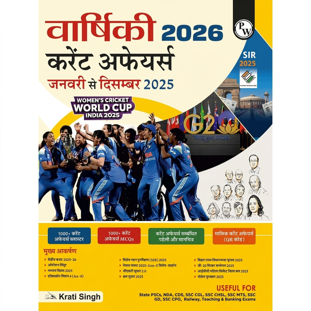 PW Yearly Current Affairs 2026 (January to December 2025) By Krati Singh | Hindi Edition | SSC, Banking, Teaching, Railway, Defence, UP Police & Other Competitive Exams 2026-27 Paperback – 1 January 2026 Hindi Edition by Krati Singh (Author) ISBN- 9789374678480